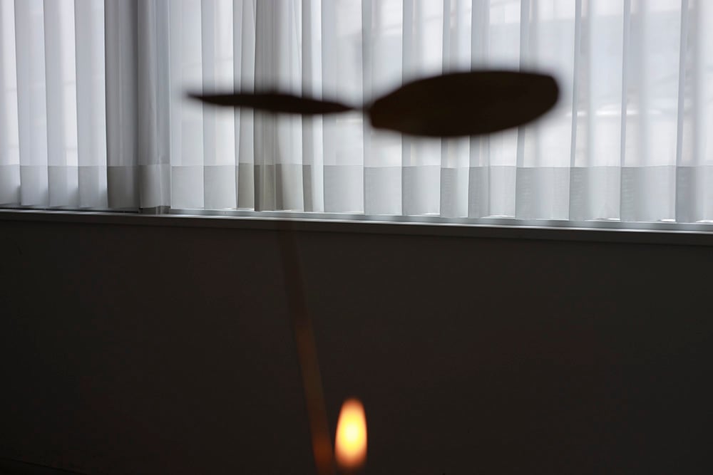 Turning Lampはモビールとランプの中間のようなプロダクトともいえます。真鍮の羽根はゆっくりと旋回するので、ただただ眺めているだけでも気持ちが温まるように、心をじんわりとととのえてくれます。